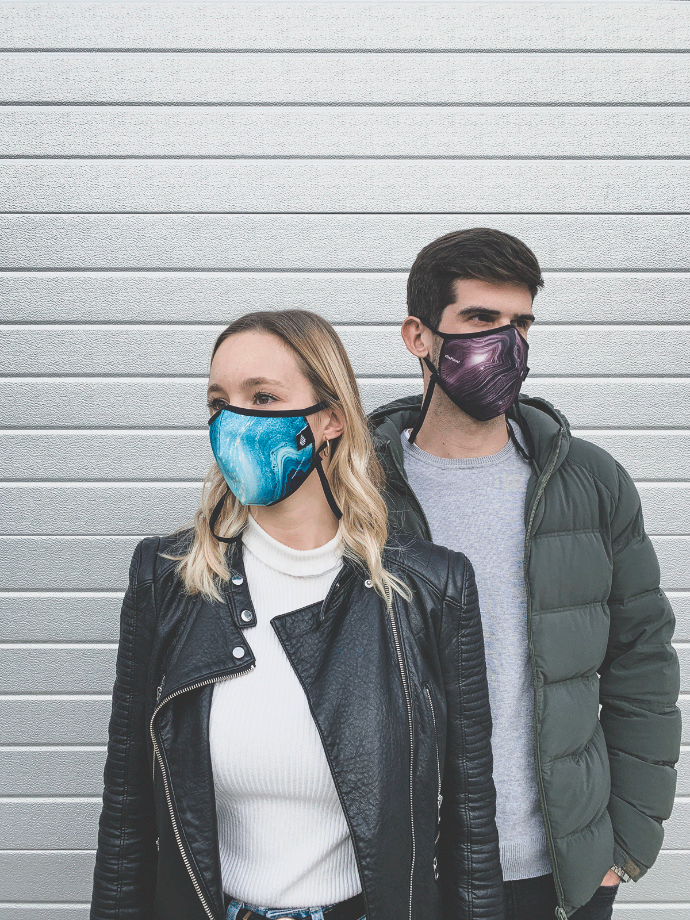 La exposición reúne una buena parte de las aportaciones en mascarillas higiénicas hechas por diseñadores y empresas. Son ejemplos las mascarillas higiénicas Arpe (Skut-0) fabricadas a partir de r-PET Post-Consumo y con una capacidad de filtración del 98.4% (BFE).