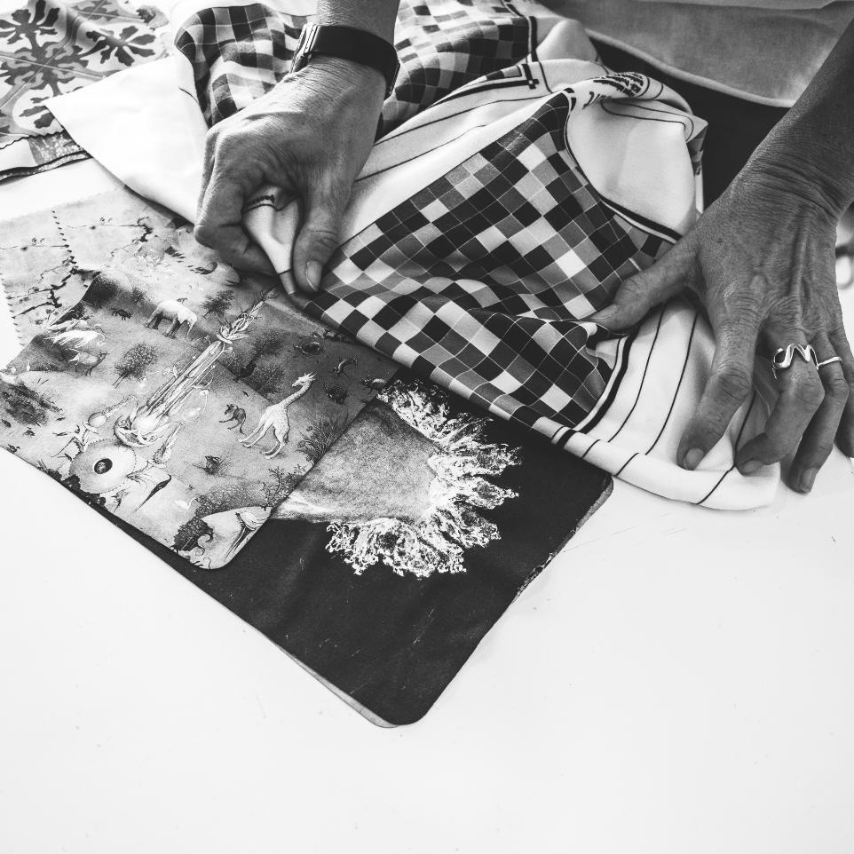 We manufacture the fabric, conceptualise the piece and print with rigour.